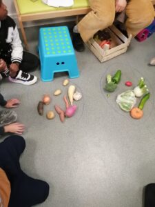 Nous avons aussi fait un jeu avec les légumes: il fallait classer les légumes racines et les légumes fruits ou fleurs.